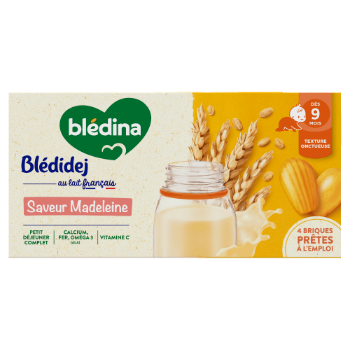 Blédidej, ce sont de délicieuses céréales lactées au goût tout doux et à la texture onctueuse pour bien commencer la journée ! Découvrez Blédidej Saveur Madeleine pour un petit-déjeuner complet et équilibré à la saveur réconfortante de la madeleine dès 9 mois.