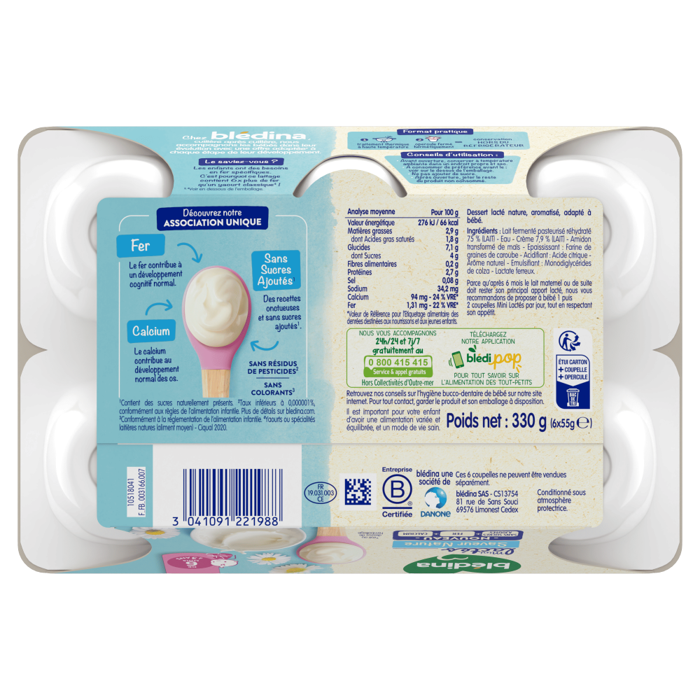 Blédina encourage l'allaitement maternel au moins jusqu'aux 6 mois de l'enfant en accord avec les recommandations de l'OMS. En effet le lait maternel est l'aliment le mieux adapté aux besoins spécifiques des bébés. Par ailleurs, la réglementation interdit aux industriels de l'alimentation infantile de communiquer sur leurs laits pour nourrissons (0-6 mois). Consultez votre médecin.