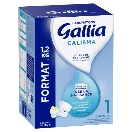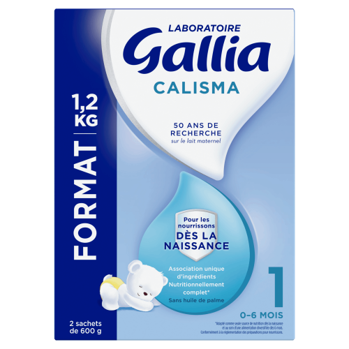 Calisma 1 de Laboratoire Gallia est une formule infantile qui accompagne votre bébé au quotidien, dès sa naissance, lorsqu'il n'est pas allaité, conformément à la réglementation des préparations pour nourrissons.