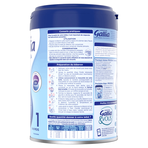 S'appuyant sur 50 ans de recherche sur le lait maternel, le Laboratoire Gallia a développé cette formule pour accompagner bébé et contribuer à ses besoins nutritionnels spécifiques.*
